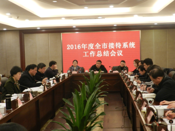 2017年2月9日,全市接待系统2016年度工作总结会议在芷园宾馆召开。会上,各区县(市)接待办主任进行了总结发言,对2016年度区县(市)先进单位开展了评先评优,党组副书记、副主任周训银、纪检组长谢梦分别就接待工作和纪检监察工作提出了工作要求。最后,市接待处主任曹慧回顾了2016年度全市接待系统工作,对2017年接待工作提出了要求:一是要充分认识接待工作很重要,二是要充分树立接待品牌文化,三是要充分认识到接待工作无小事,四是重要接待要用心,突出个性化服务,五是要加强接待人员自身建设,提高综合素质,六是新形势下要规范接待,不越红线。